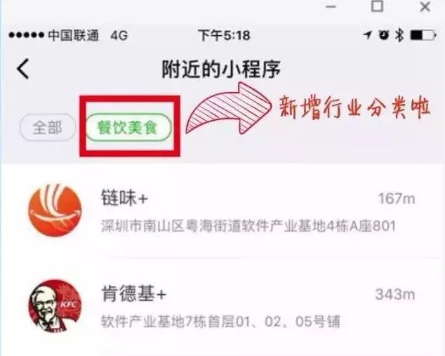 近期,安卓板的用户打开小程序,进入附近小程序,郝然会发现在顶部出现“全部”“餐饮美食”两个分类选项,这是?